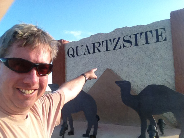 At the mouth of Kofa Queen Canyon we got out of the vehicle and looked about in awe. Mason began photographing. He decided to camp there to take advantage of sunset and sunrise light and to perhaps get some starlight shots. Free from the car, we three had some time to ourselves as we wandered about admiring views, focusing on details of the land, feeling the breeze, smelling the scents and hearing the natural sounds and rhythms that make wilderness so special and intimate. It’s moments like these when the rush-rush business of the day can fall away for a short time and make space for larger thoughts. I’d been to this exact spot several times before. I came to know Kofa a bit because I had been dating the Refuge biologist; she’d brought me to places like this and taught me about the area. We’ve since parted, and I wonder if the next truck we see will be her’s. I can’t help thinking about that relationship. I believe that landscapes hold pieces of us and our memories; a supra-physical combining of place and experience into more than memory, into an intertwined imprinting of landscape and us; a “connecting” in a literal sense of our past-present-future as individuals and groups through place. Earlier today we’d received the horribly tragic news that one of our colleagues, Megan Dickey, had died. I know Jen and Mason worked in our Denver office with Megan and I know the news is weighing heavily on them. We’ve talked OF it during the day but not ABOUT it. And I’m rather deficient at grieving with others or of showing my sympathies and support in situations like this. The forced reminder of our mortality puts me in a state of existential denial or avoidance. As I walked about the beautifully blooming desert I thought about the only time I met Megan. It was a few months ago when I was in our Denver office for a meeting. As I was leaving to catch my flight home I was saying goodbyes to everyone there. I saw a young woman working in an office by the door and didn’t recognize her. So I politely interrupted her and introduced myself. She was Megan. I remember an exuberant energy from her, a big smile, and a too-short chat of introduction that ended with intentions to talk more and work together in the future. Standing in an ethereal wildflower bloom I thought of that afternoon in Denver. How I was happy I had interrupted Megan; and how “see you next time” is a hope as much as a promise. And now the rocks and landscape of Kofa Queen Canyon hold another memory, another piece of me—as sure as petroglyphs and flowers. And in some way—if only through tragic timing and the memories of Jen, Mason and me—this clearing above the bajada with granite surrounding, Kofa Queen Canyon now holds something of Megan. A place maybe she’d never been; until now. +++ Jen and I helped Mason unload his camping gear and camera equipment and we all planned to meet back there in the morning—Jen and I staying in town for the evening, Mason joining us for night two. Well, by “in town” I mean Ehrenburgh, Arizona, about ten miles west of Quartzsite. We’d looked to stay in Quartzsite but the only motel there had horrible Yelp! reviews—including several recent guests who posted photos of the bedbug bites they received. So, Ehrenburgh it is. We checked in to our rooms then drove over to Blythe, California, to get a quick meal. Sitting outside a local BBQ place we got talking. The more we talked, the more it seemed that getting Jen and Mason back home to be with friends and family grieving Megan was important. We did some googling and quick calculations and figured we could wrap the next day’s shoot at sunset and still be able to get them to Phoenix Sky Harbor airport for a late-flight for Jen and a next-morning flight for Mason. We texted Mason—amazingly, he had service—and hatched the plan. +++ >>(Back to) THURSDAY After the beautiful fleeting sunrise we are back out on Kofa to get Mason. He reports a beautiful night of stars and natural sounds. We load his gear in the van with ours and head into Quartzsite.